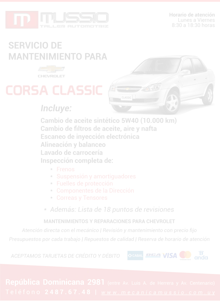 El Servicio de estetica automotriz para tu CHEVROLET incluyen: